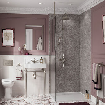 Combines classic styling with contemporary performance (easy-clean glazing, water-efficient flush, modern shower valves).